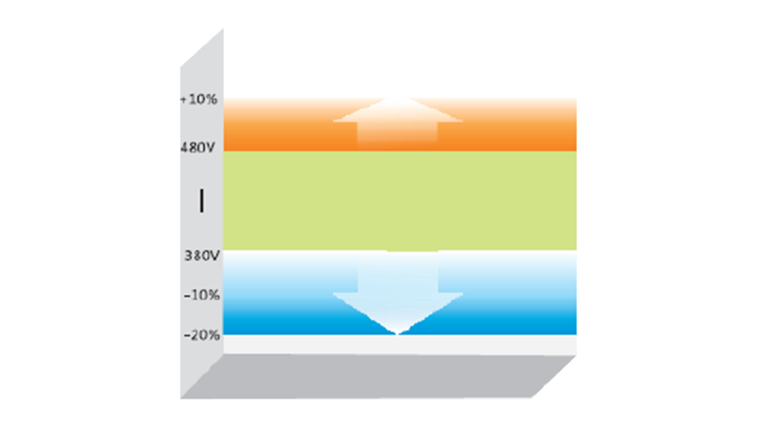 可在200~240V/380~480V(-20%~+10%)電壓范圍內(nèi)工作,滿足苛刻的用戶電網(wǎng)環(huán)境。