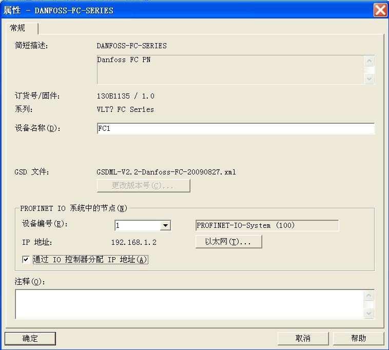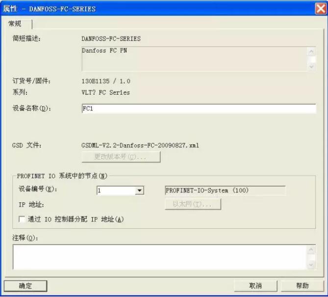 丹佛斯 FC300 系列變頻器 ProfiNet GSD 文件名為“GSDML-V2.2-Danfoss-FC-20090827. xml”(可從丹佛斯官網下載)。
