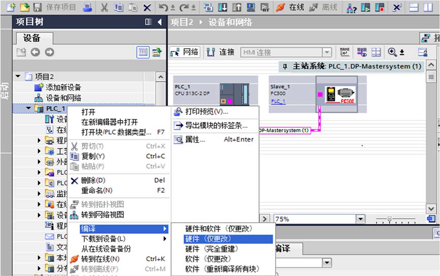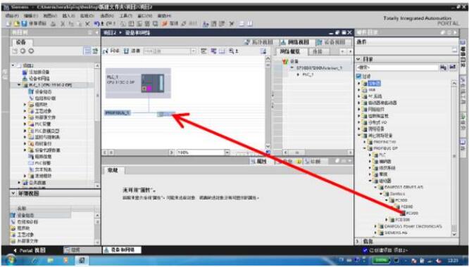 將變頻器 FC300 拖動(dòng)到 PROFIBUS_1 連接線處后,PLC 和變頻器連接在一起,F(xiàn)C300 顯 示為未分配。