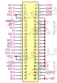 給變頻器送電后,變頻器面板顯示ERR37,根據故障解釋說明,檢查CPU小板反饋至控制卡的信號波形異常,有帶毛刺的尖雜波。測量點為下圖45,47號。