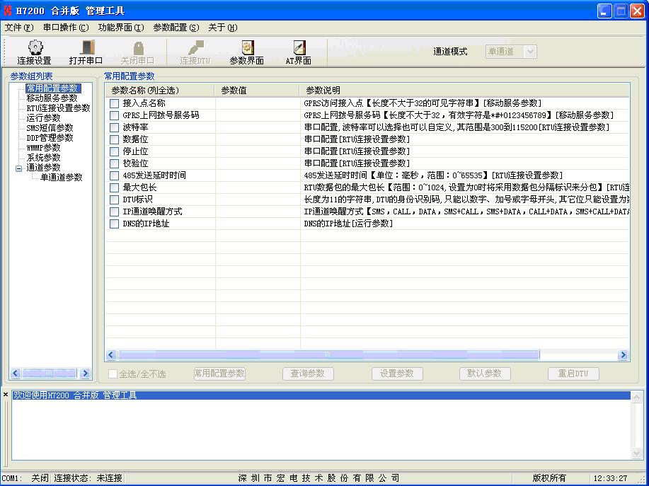 如圖1所示是某公司的GPRS通信模塊,你具有RS232/422/485接口,可與現場設備相連。其正常工作需要一張開通GPRS流量的移動通信服務商的SIM卡,并需要對其進行參數配置。參數配置時,使用其RS232、RS422或RS485接口與電腦串口相連,再使用該模塊廠家的配置軟件對其進行參數配置即可。具體接線端子及電氣參數請參考相關模塊產品手冊,關于通信的相關參數配置下文論述。