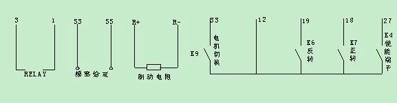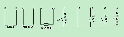 K6和K7分別控制電機(jī)正反轉(zhuǎn),K4為使能端;頻率給定方式是PLC輸出0--+10V的電壓信號對應(yīng)0—50HZ;并且KEB也是利用變頻器自身的+15V源極開機(jī)方式.以上條件丹佛斯VLT2800全部可以滿足并且能夠達(dá)到客戶所有要求的功能.