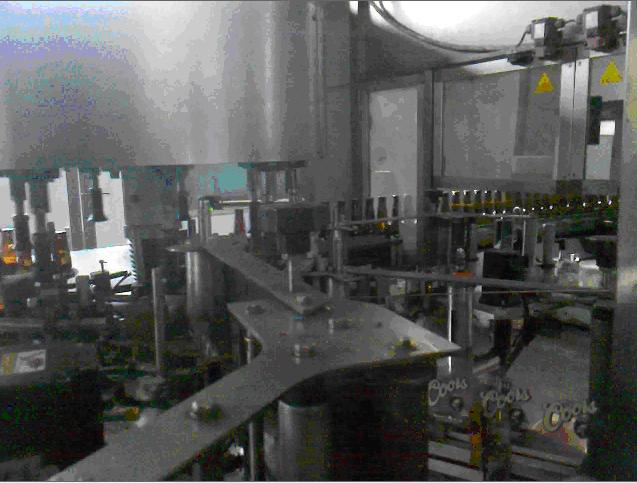 啤酒貼標機由進瓶傳送帶、主軸、出瓶傳送帶、貼標伺服及各個位置傳感器組成。當設備運行時,系統會檢測當前貼標工位是否有瓶子,如有,則對應得貼標伺服開始動作。例如當系統檢測到背標工位上有瓶子,且貼標有貼標信號時,則貼標伺服開始動作,由色標檢測傳感器來結束貼標動作,身標與頸標動作與背標一致。