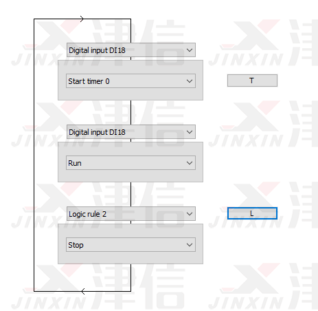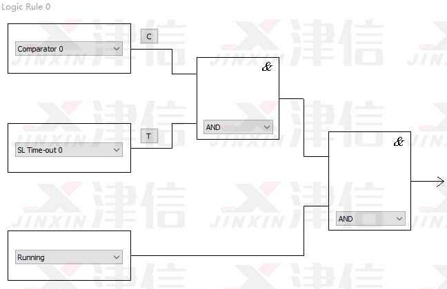 斷線停機(jī)功能通過SLC邏輯輔助完成。SLC邏輯流程圖如下,Logic Rule 0判斷是否符合啟動(dòng)條件,Logic Rule 1判斷是否符合停止條件。