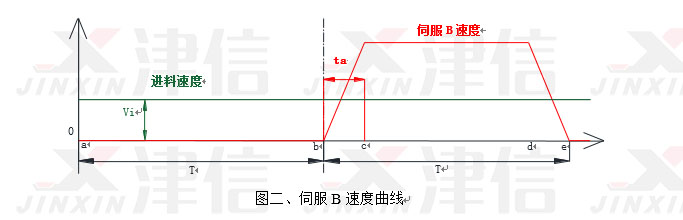 3) 鋪網機從右向左鋪網時,伺服B速度從0勻加速到VB,加速時間為ta =0.2T;