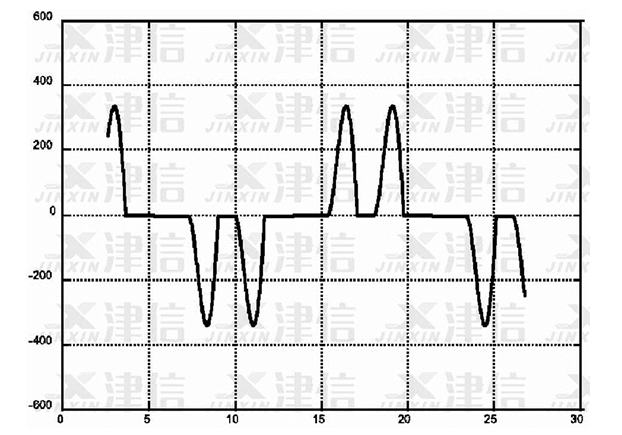 圖3是在高壓示波器上測量出的輸入側電流波形圖,在此圖上可以清晰的看出變頻器輸入側電流波形所產生的畸變。