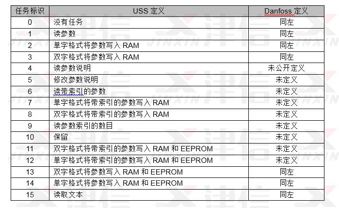 USS協(xié)議與Danfoss RS485通訊協(xié)議報文格式對照比較: