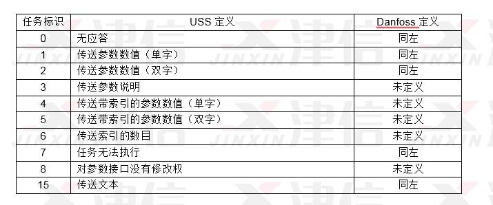 S7-200 USS4通訊子程序中用到的任務標識與Danfoss的定義相同。