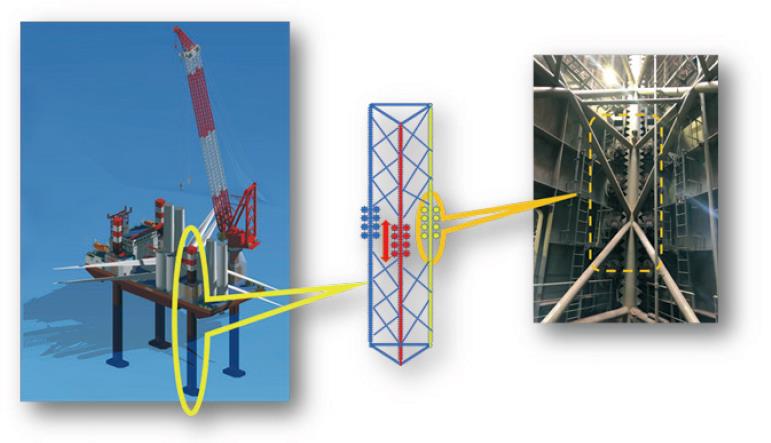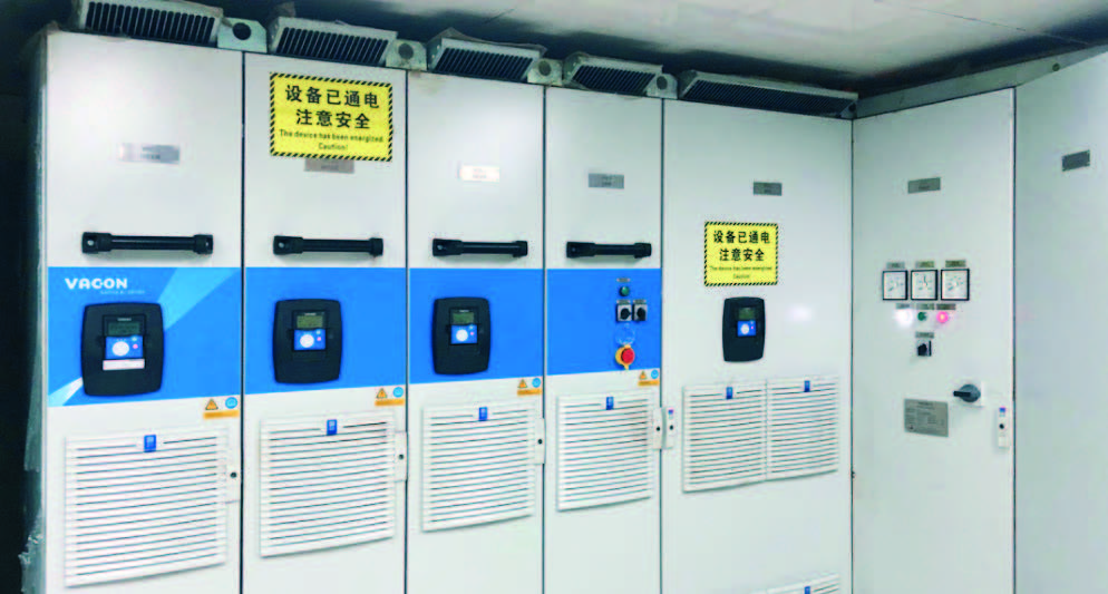 平臺的關(guān)鍵配置為變頻動齒輪齒條升降系統(tǒng),整個平臺共有4個樁腿,可以自由上下升降,并且需要根據(jù)實際工況隨時調(diào)節(jié)三邊鋼結(jié)構(gòu)舷的應力。整個平臺的重量都承受在4個樁腿上,因此對于啟動時候的電機力矩有很高的要求。因此公司采用Danfoss VACON® NXPCommon DC Bus System系列共直流母線驅(qū)動產(chǎn)品作為抬升系統(tǒng)的電氣驅(qū)動使用。