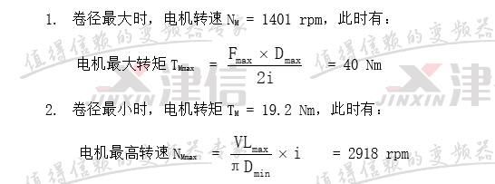 選擇異步伺服電機的方法:以滿足最大卷徑時的轉矩、轉速數據為電機額定數據,選擇異步伺服電機。